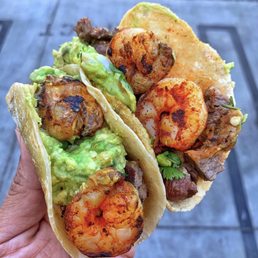 Some seriously delicious tacos in Sawtelle. Actually everything we ate was better than we were expecting and we already want to go back to try more items. It's more of a to go type of place but they do have seating inside as well. They have a fairly large menu but what makes them stand out is that they have premium ingredients like filet mignon for tacos, burritos, or bowls. There is a parking lot in the back that is for pay but otherwise street parking is easy to find in this area. It is a bit expensive for Mexican food, but they do have some great flavors. We placed our order to go and it was only about a 10 minute wait for all of our items so the service was very fast for us. We wanted to try a few different items since it was our first time. We chose the Filet Mignon Burrito, which was probably my favorite because the meat was cooked perfectly and it was absolutely filled with avocado, which is one of my absolute favorite things to eat. We also ordered the Steak and Shrimp Taco which was very good and the Salmon Taco which was also light and tasty. Finally, we ordered the Asada Fries and really enjoyed them because they don't skimp on the toppings. The portion sizes are not very large in comparison to some other places, but they certainly are not small. Overall a really delicious spot, I would not say it's the most authentic, but still worth trying because it really is very good.